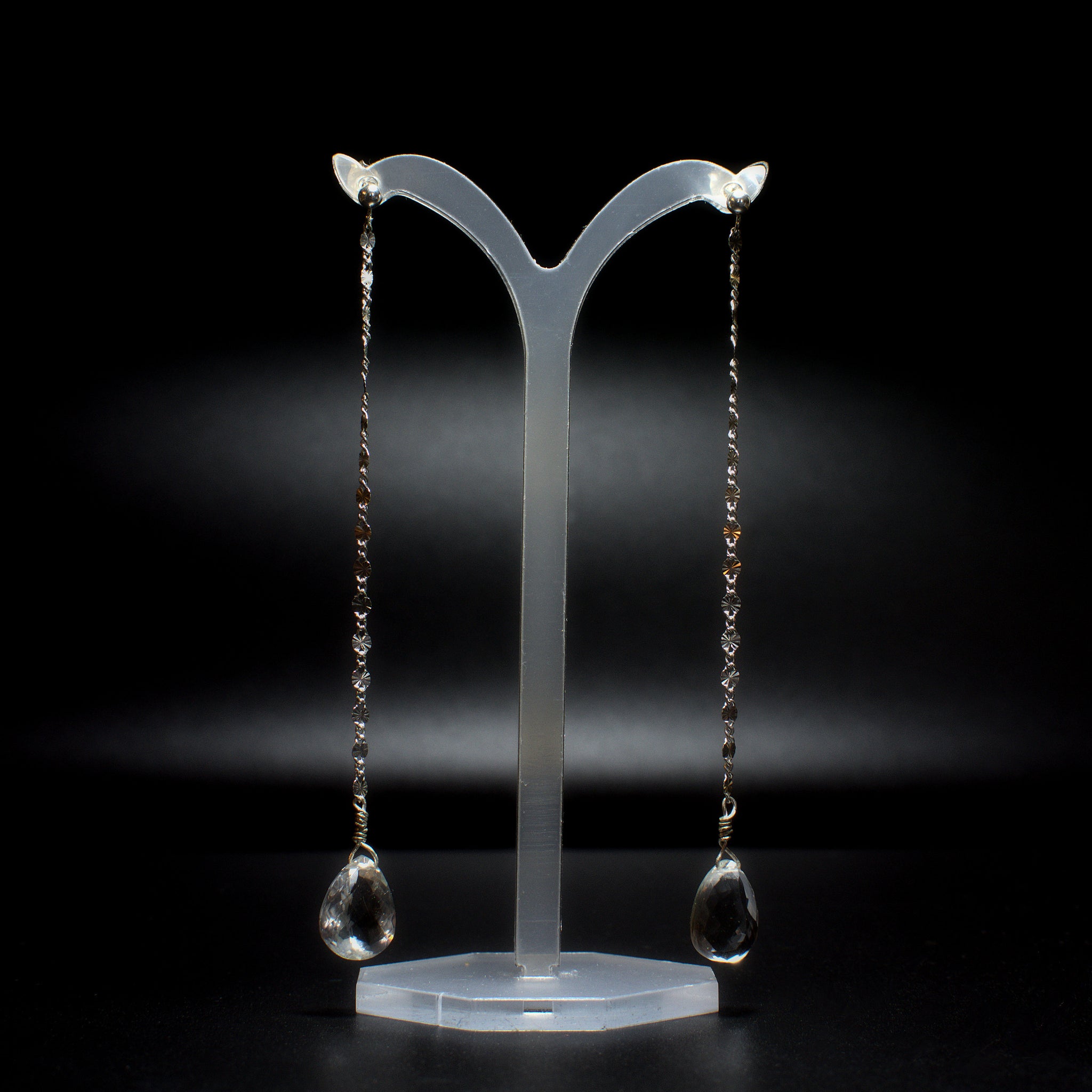 These nature inspired sparking Rock Crystal earrings capture the essence of raindrops, their glistening allure catching the light for a mesmerizing effect. Designed for versatile wear, they can be worn on each ear for a classic look or switch it up and wear them as a double lobe piercing on a single ear.