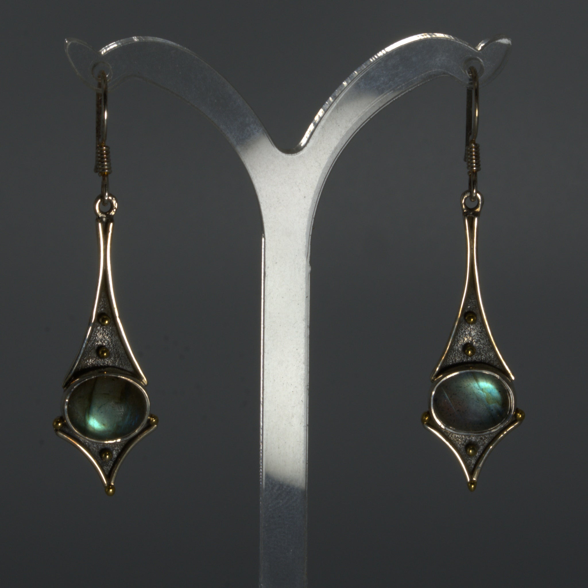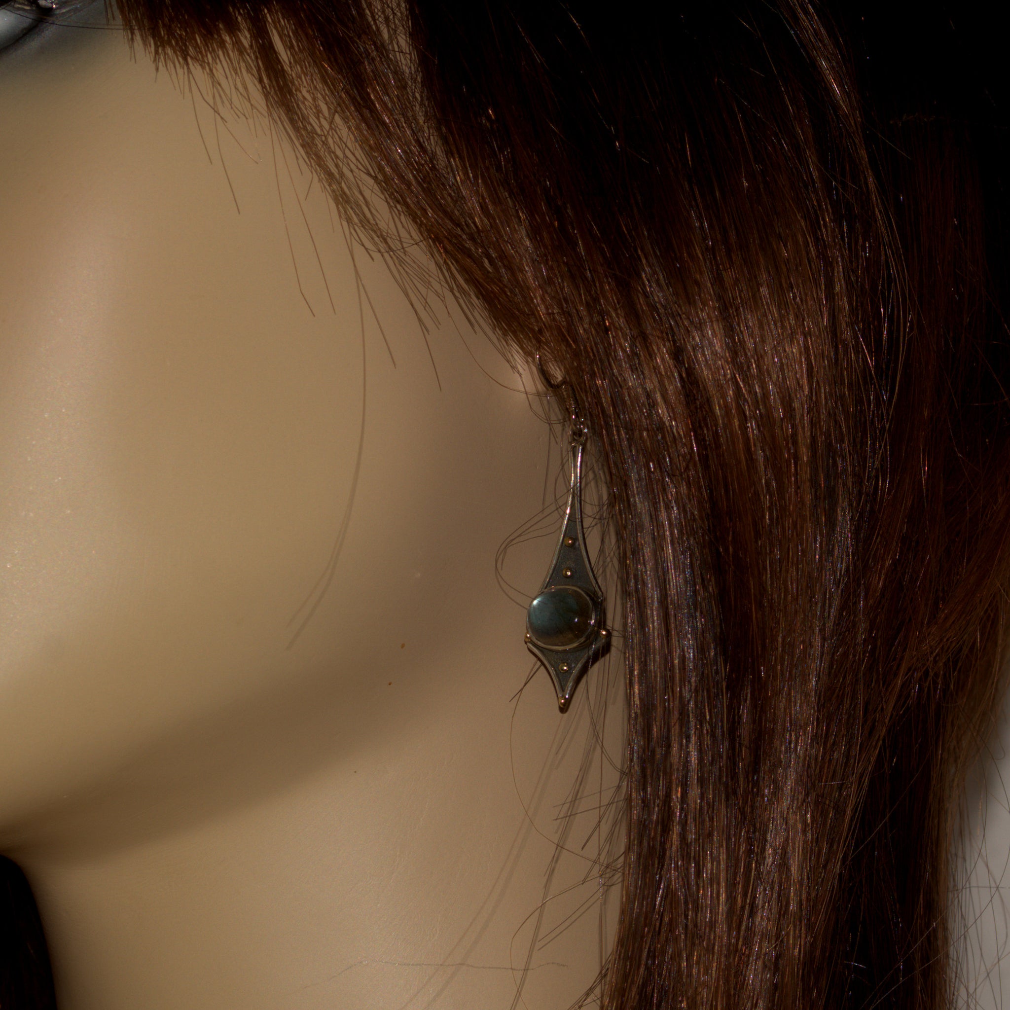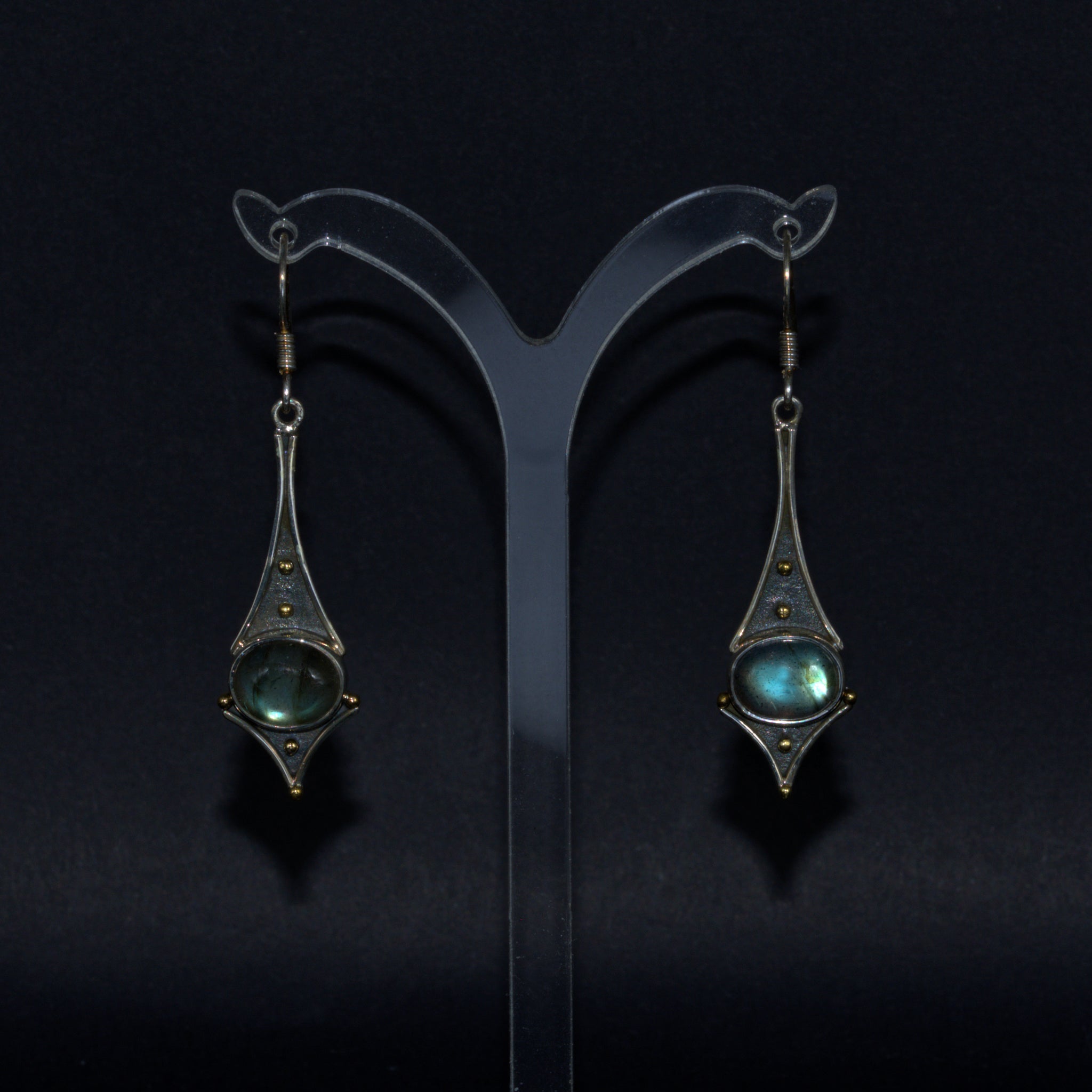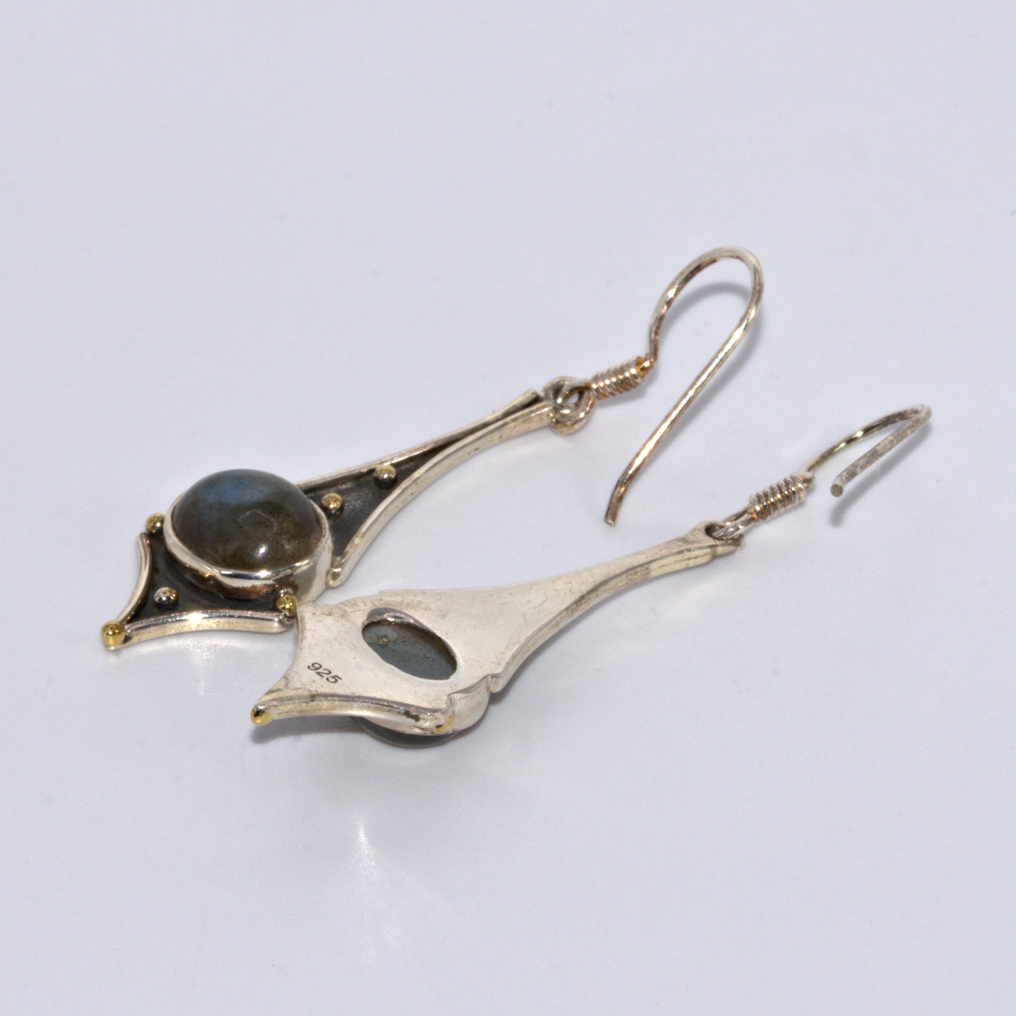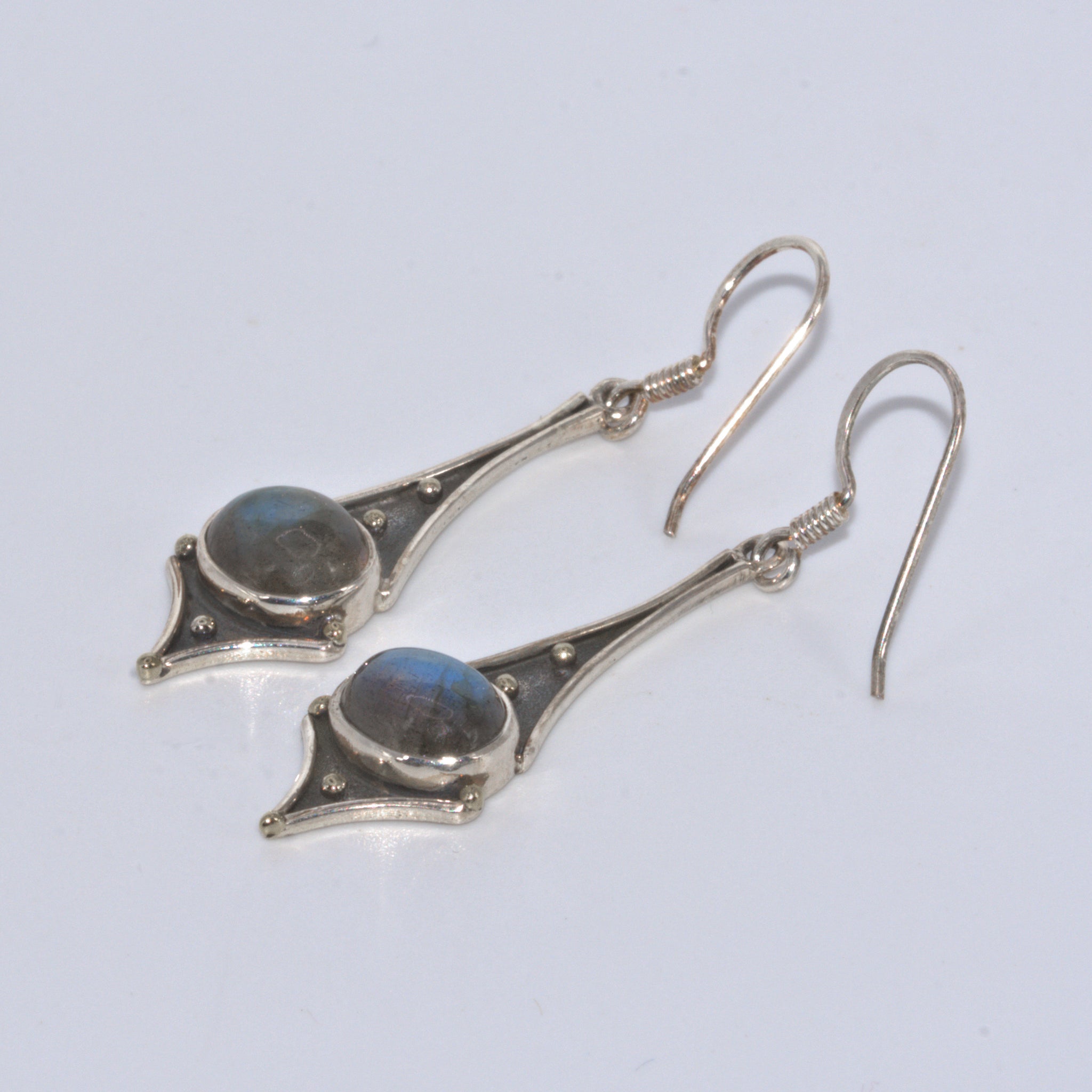 Crafted with solid 925 silver, these boho earrings feature a stunning oval Blue Flash Labradorite cabochon on each drop.