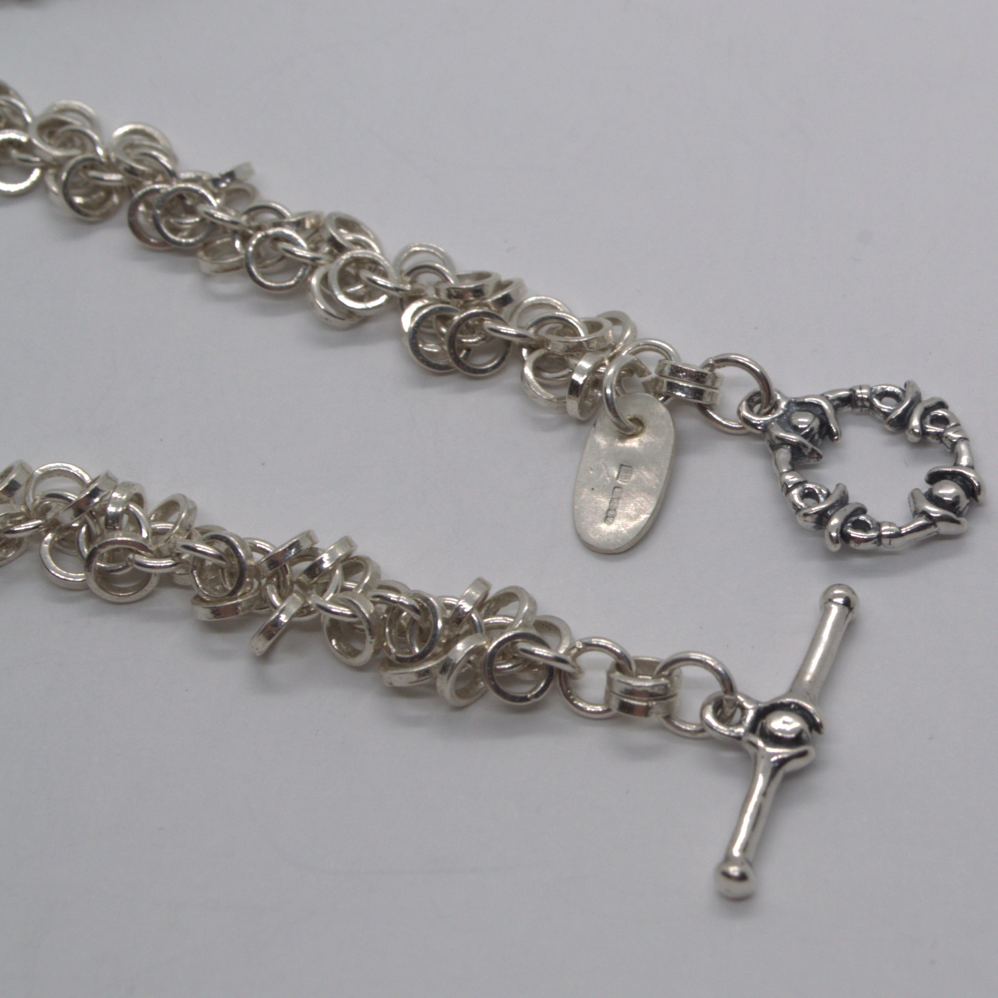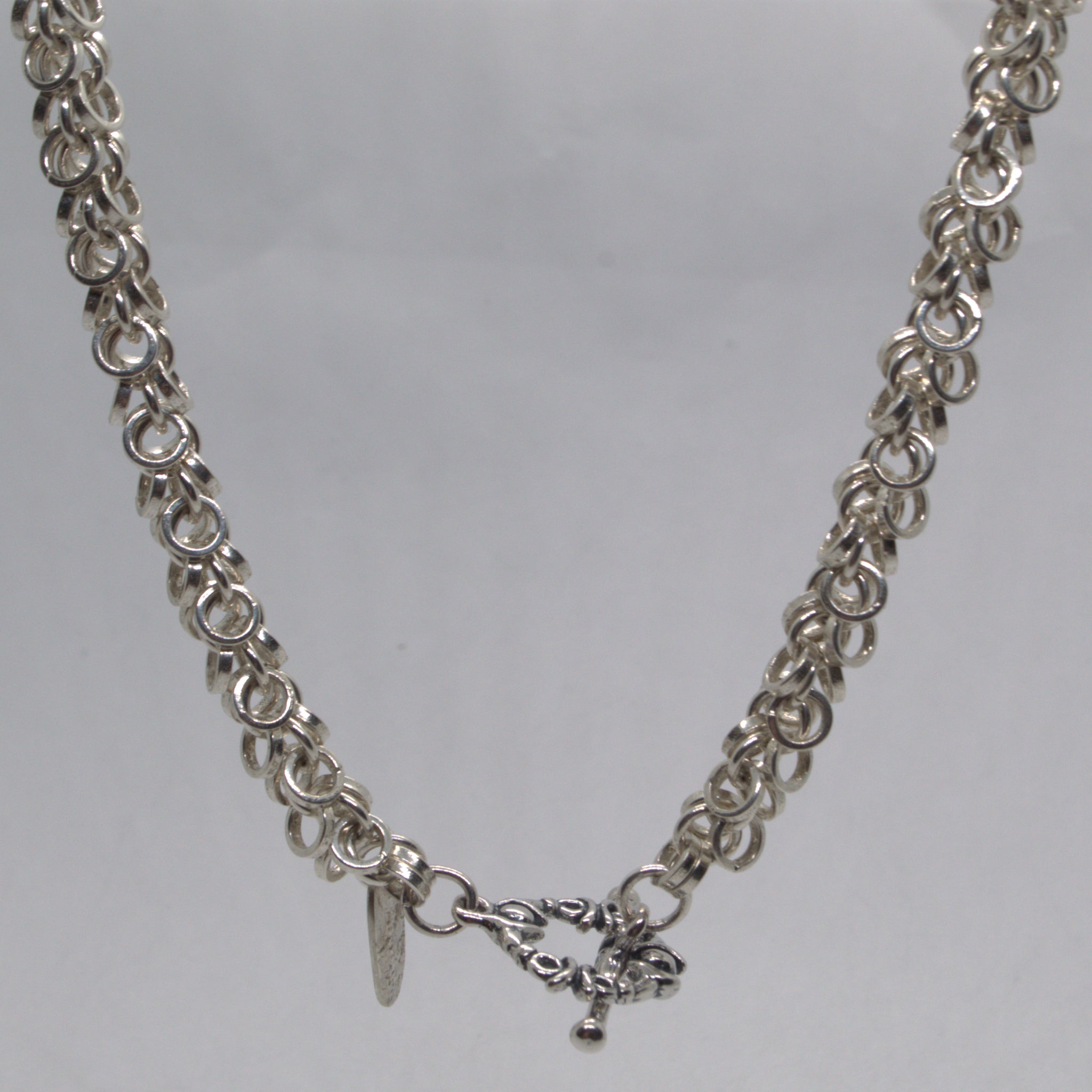 Fastened with a ring and toggle, this silver necklace features a full set of UK hallmarks from the London Assay Office.