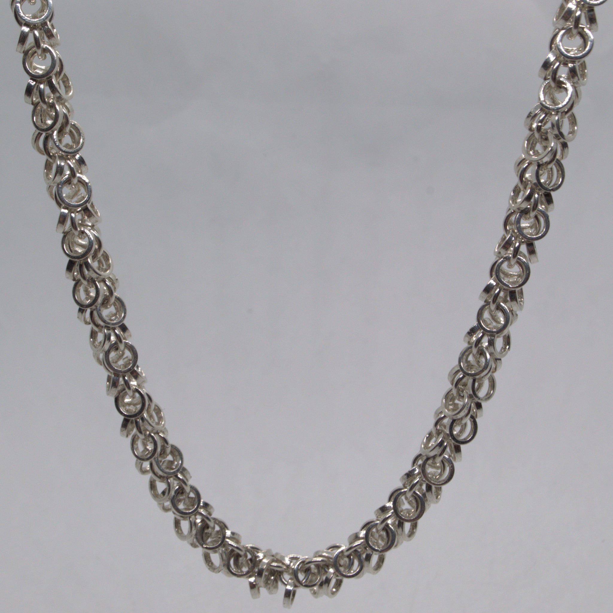 Solid 925 sterling silver 5.00mm wide chain necklace featuring an intricate round multi link design